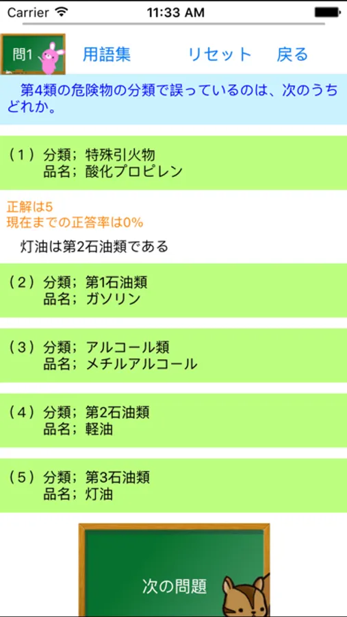自動で間違えた問題を記憶し、間違えた問題、まだ解いていない問題を優先的に出題します。またセーブ機能がついているため、途中でやめても再度立ち上げた時に続きから問題を解くことができるので、効率よく勉強をすすめることができます(データは各科目ごとにmenuボタンからリセットすることができます)