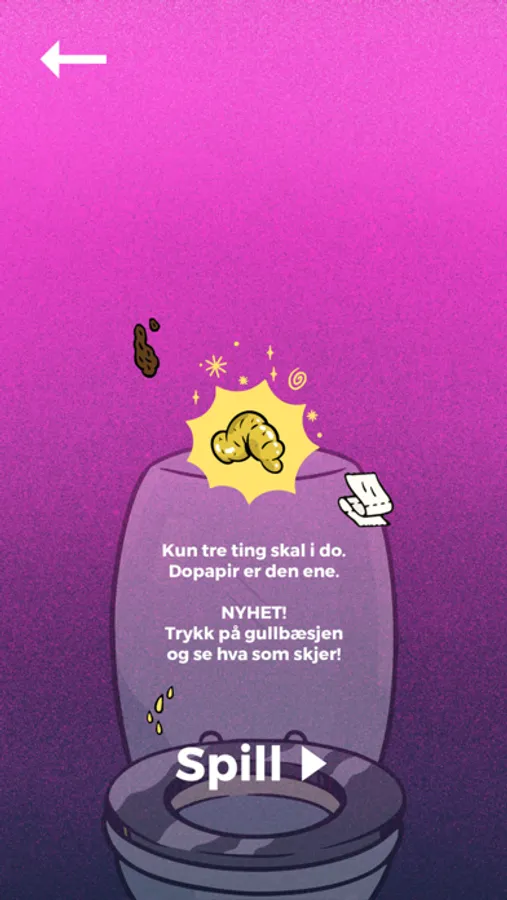 Kun tre ting skal i do. Dopapir er den ene. Vet du hva de to andre er? Spill Don’t DO it og se hvordan det står til med dovettet ditt. Du får poeng for hver ting du kaster riktig. Kaster du noe i do som ikke skal være der, er spillet over.