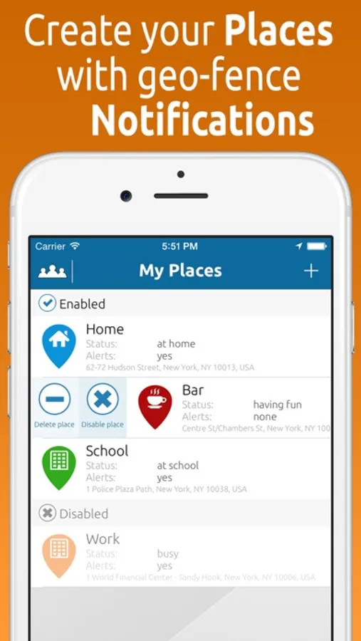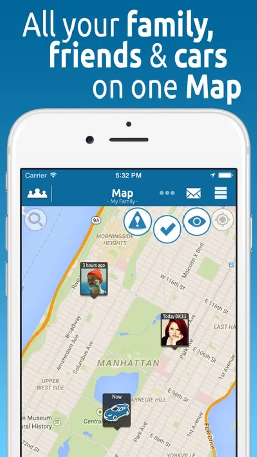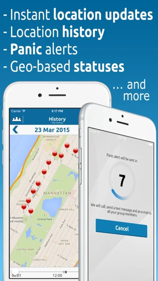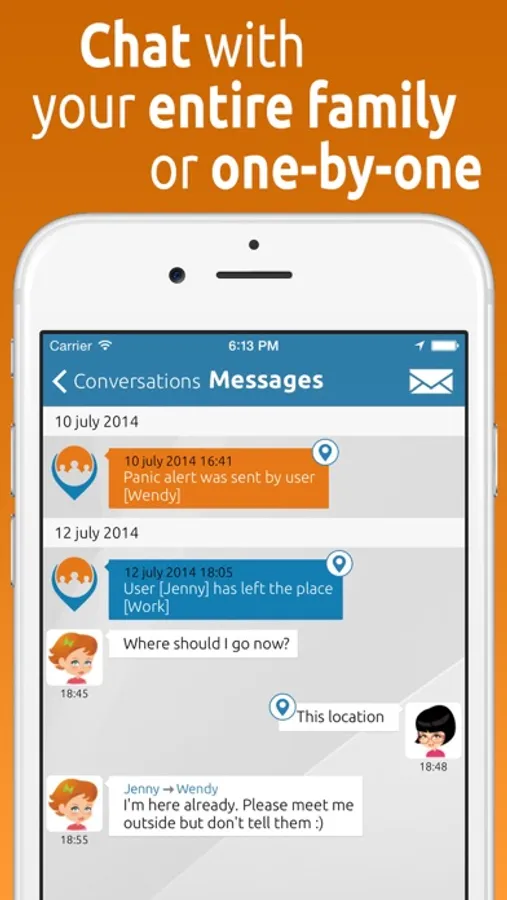 - Use KinKin panic button to instantly notify the entire family that you need help (your location will be sent automatically)