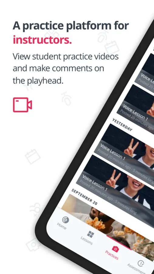Students can use the Collabra mobile app to record practices, submit assessments, and engage with lessons anywhere. Features include: