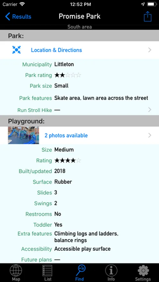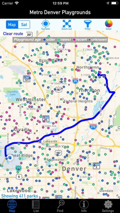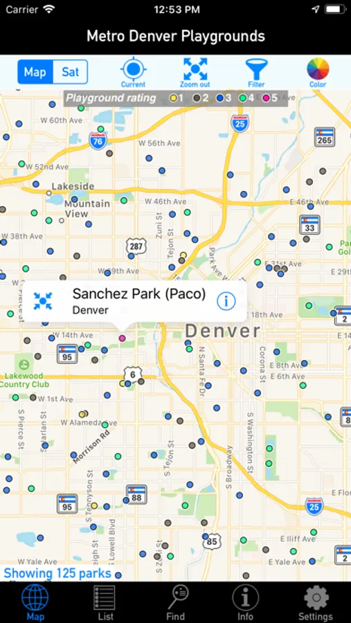 This app reviews over 800 public playgrounds in the Denver metro area, from Golden to Aurora, and Broomfield to Centennial. The free version provides names, exact locations, and photo previews of all play areas on a zoomable map. An in-app purchase unlocks over 1500 photos, ratings, amenity & play equipment information, as well as driving directions. Also listed are pools, creeks, spraygrounds, dog parks, sledding hills, accessibility features, and more. This project is an ongoing effort; I update the app regularly as playgrounds change or new play areas open.