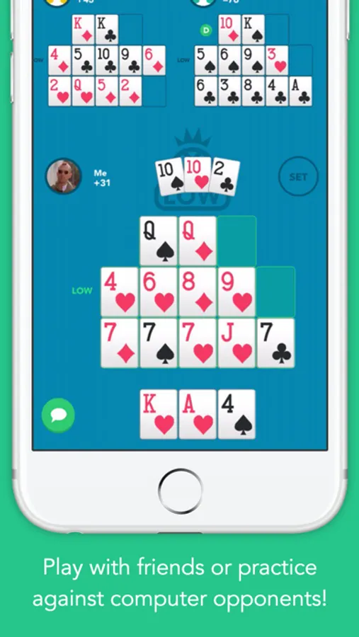 • Only app to offer 3-handed games between friends.