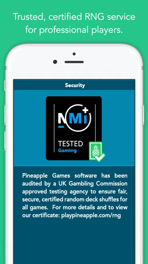 • Only app with RNG-certified random card dealing.