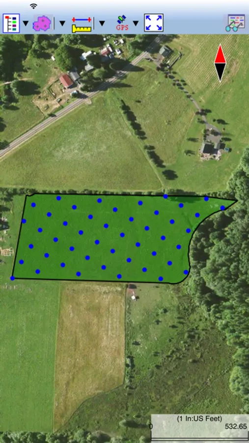 Deed Calls - Grid - Stakeout for iPAD, iPhone and iPod touch provides the functions for creating an area by entering deed calls, generating grid points over the area, as well as locating the area boundary and the grid points. These functions are very helpful to foresters who need to create a deed plot and add a grid of sampling points for timber cruising or stand survey. Farmers could also use these functions to help them navigate to sampling points for taking soil samples. To make use of the Stakeout functions, your device needs to have built-in GPS or be connected to a compatible external GPS.
