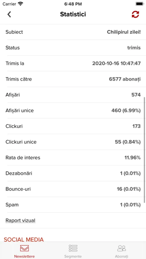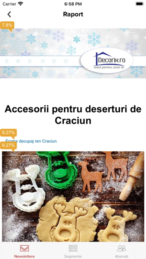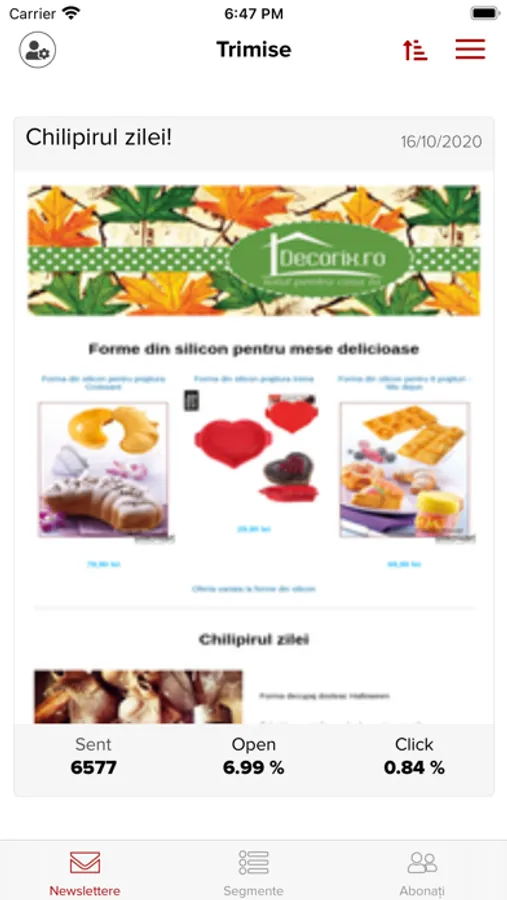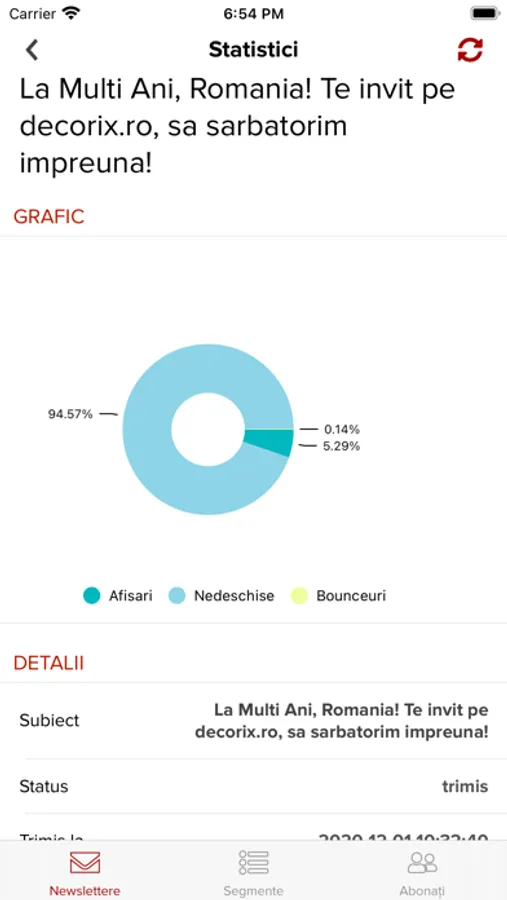 RO - Aplicația iOS NewsmanApp vă permite să aveți acces rapid la rapoartele newsletterelor trimise, direct pe telefon. Puteți vedea pentru fiecare newsletter rapoarte despre câte click-uri, deschideri, raportări de spam și bounce-uri. De asemenea aveți acces rapid la lista de abonați și de segmente. Pentru fiecare abonat se poate vedea istoricul pe ultimele 6 luni.