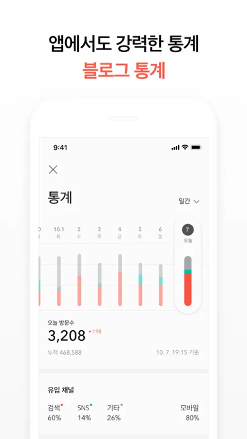방문수 그래프를 터치하시면 통계 상세 정보를 확인하실 수 있습니다.