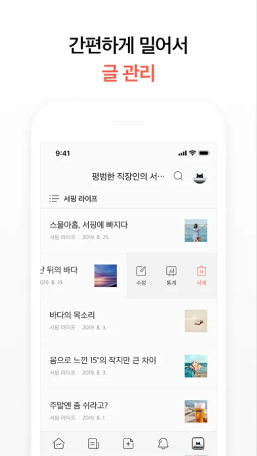 글의 공개 상태를 손쉽게 변경하고, 글별 통계로도 빠르게 접근하는 것이 가능합니다.