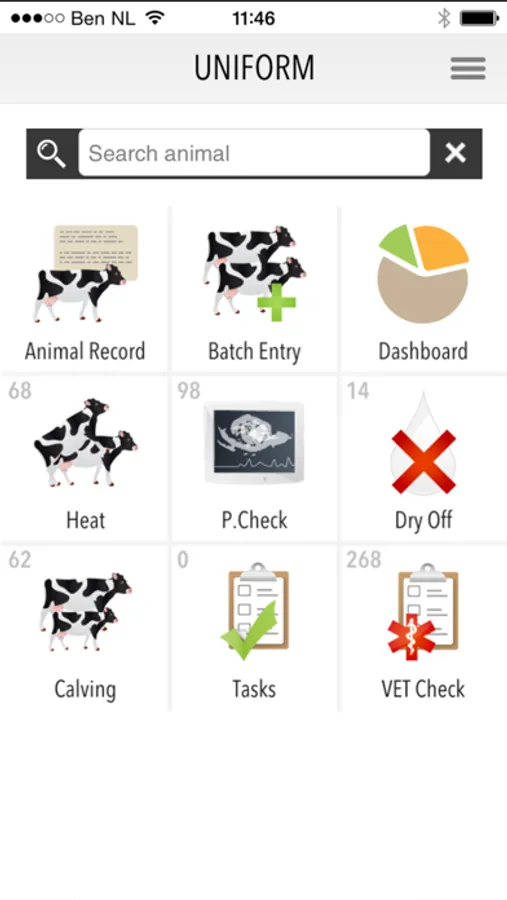 UNIFORM-App is the application for mobile use of the UNIFORM-Agri 5.0 herd management software. This easy to use App has a Farmer Finger Interface, large buttons that are easy to use for farmers.