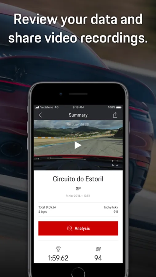The full range of app functions is only available when you drive your vehicle on tracks closed to the public that are supported by the Porsche Track Precision App.