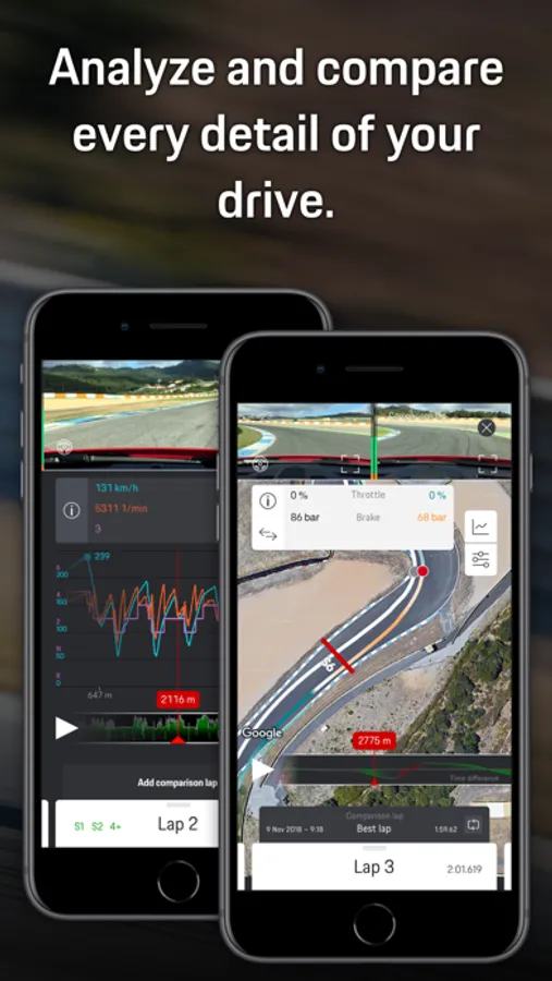 By connecting to the vehicle sensors, the app enables you to analyse additional driving data which can be compared with previous laps, allowing you to improve your driving performance, for example, in relation to the steering angle, braking pressure and the position of the accelerator pedal. Videos and driving data can also be exported to your PC for detailed analysis.