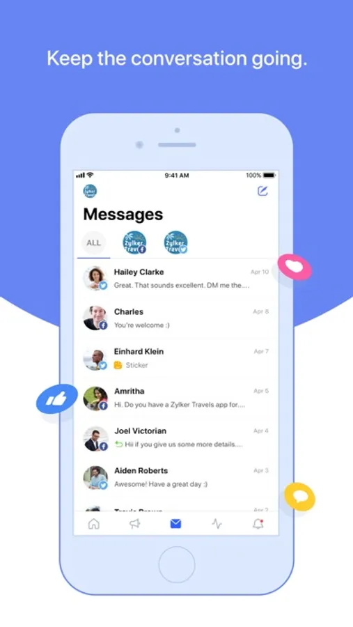 - Monitor hashtags and keywords, discover new leads and engage with your audience in real-time
