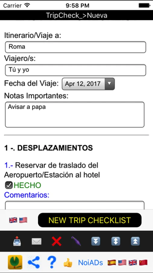 NEW TRIP CHECKLIST: Creates a new trip checklist