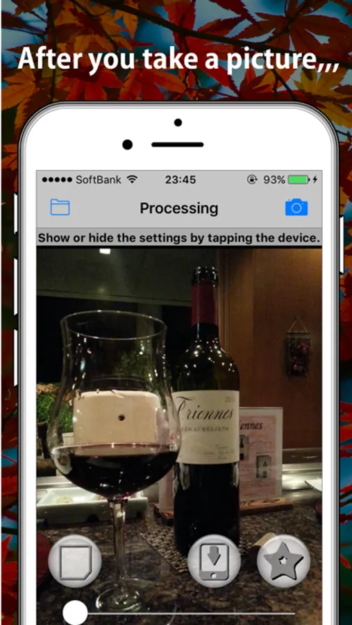 1. Please take a photograph in the "Camera" tab or select a photo in the upper left folder icon.