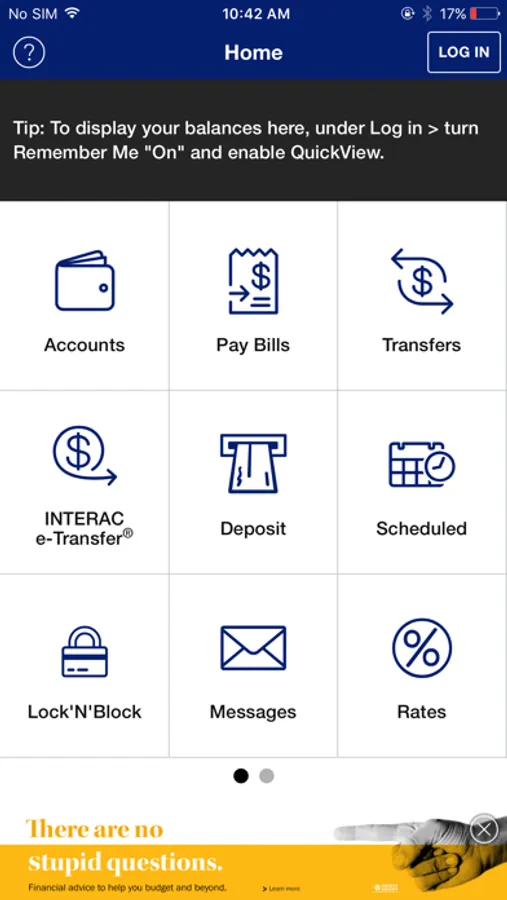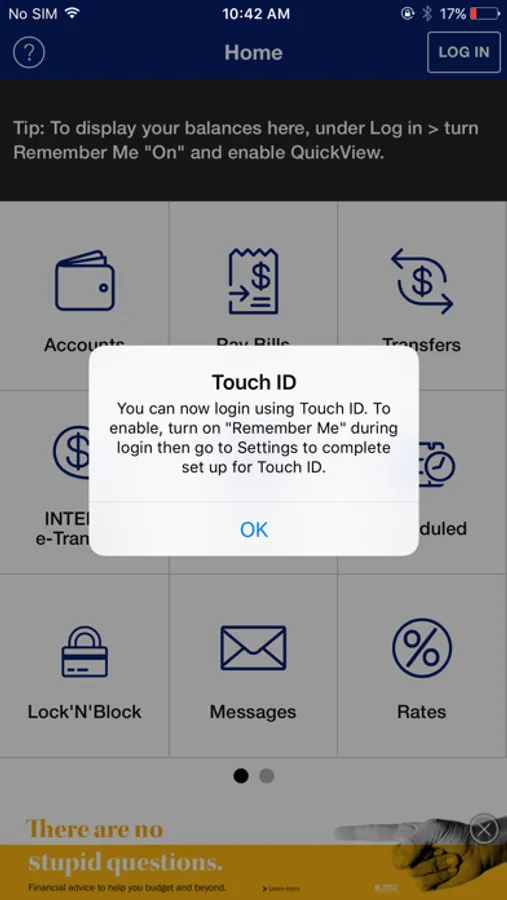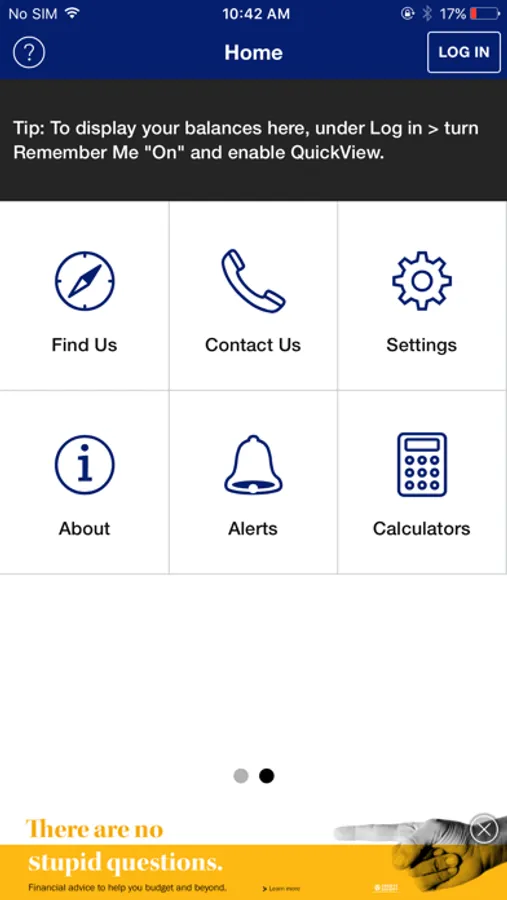 To take advantage of the full functionality of this app, you must already be registered and have logged in to online banking. If you are not an online banking member, you can still use the Branch/ATM locator, Rates and our Contact Us information.