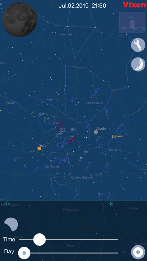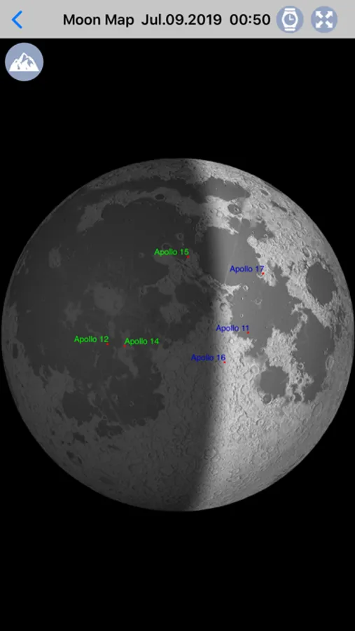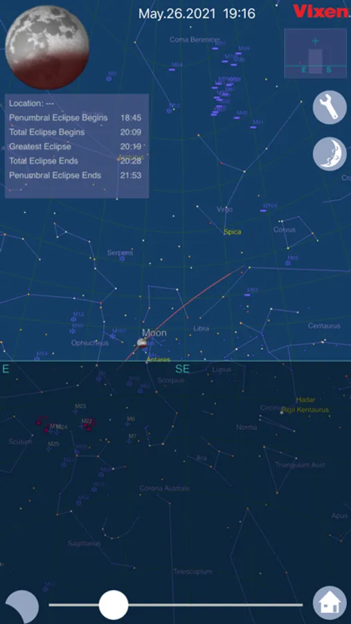 Tapping on the moon icon at the upper left corner of the star chart will show you thumbnail images of the phases of the moon eclipse at regular intervals. The interval of the thumbnail images can be changed.