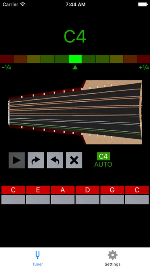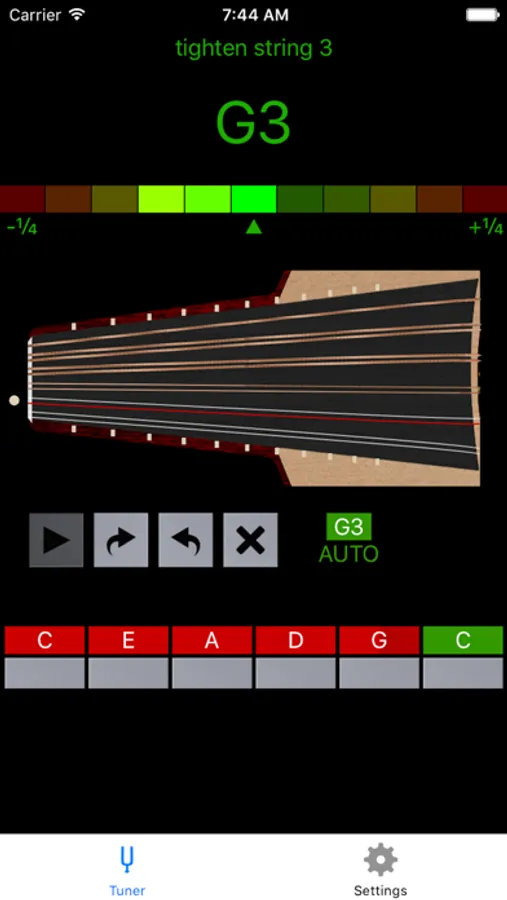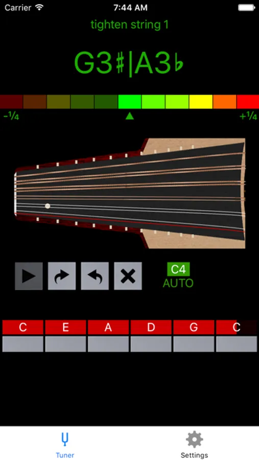 In automatic mode, it cycles through all the strings of the Oud, instructing the user to tighten or loosen each string until tuning is achieved. Choose one of 10 common presets or define your own custom tuning.