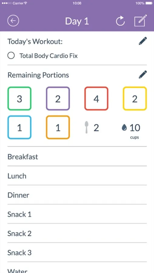 Once you finish the fitness program, maintain your weight with the maintenance tracker. Calories and portions are automatically adjusted. Track your portions and see what's remaining just like when you were on the daily plan