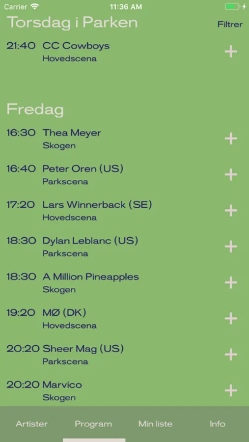 Sett sammen din egen spilleliste og få pushvarsel når din artist går på scenen.