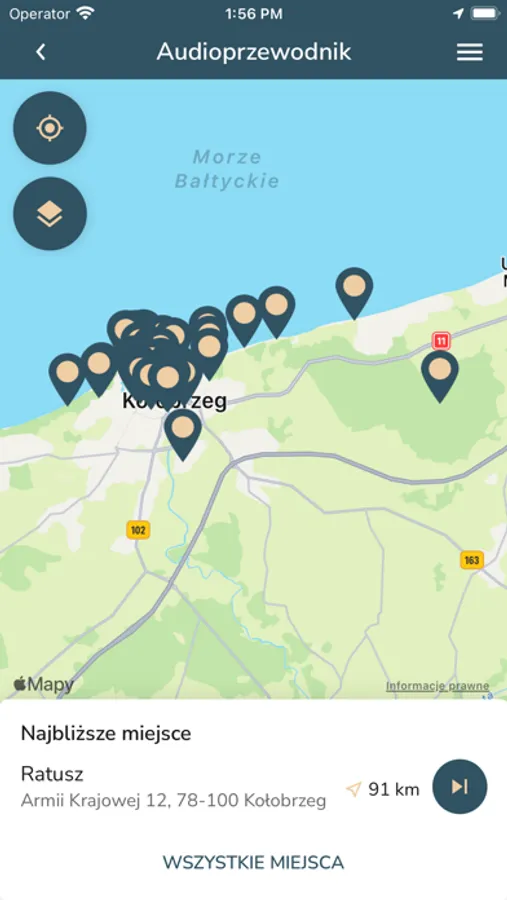Aplikacja używa GPS gdy jest uruchomiona w tle oraz gdy jest włączona funkcja audioprzewodnika. Przed zakończeniem korzystania z aplikacji wyłącz audioprzewodnik aby oszczędzać baterię.