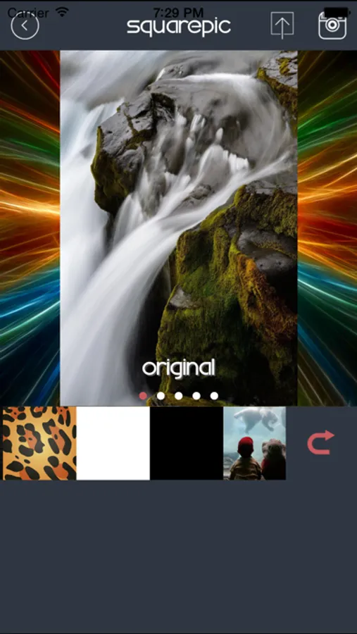 SquarePic has a flat beautiful minimalistic design which allows you to never lose any pixels of your beautiful shots when uploading an image to Instagram. You can post your entire picture to Instagram without having to crop it by choosing from our different background that best suits your picture.