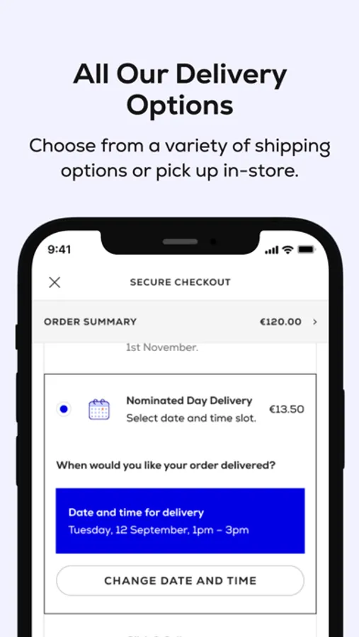 DELIVERY METHODS: Shop your favourite products and take advantage of all our delivery methods right here in the app. Choose from Standard, Premium Express, or Nominated Day Delivery, or you can Click and Collect you order from Arnotts Henry Street and any Brown Thomas store.