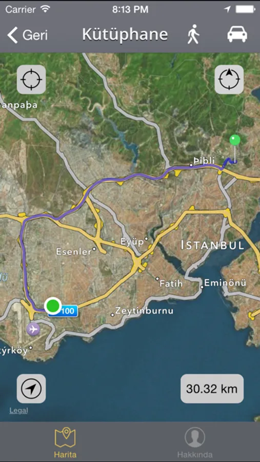 -Belirlenen hedefe araç ve yaya olmak üzere iki opsiyonlu rota çizdirebilirsiniz.