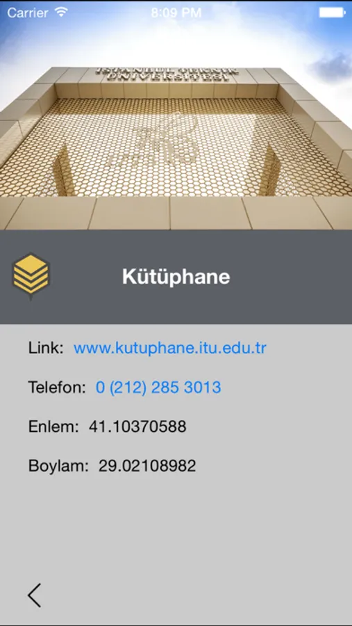 İTÜ KAMPÜS, İstanbul Teknik Üniversitesi Ayazağa Kampüsü'nde aradığınız yeri kolayca bulmanıza yardımcı olacak ve cihazınızdan web adresine ve telefon bilgilerine kolayca ulaşabilceğiniz bir rehber uygulamasıdır.