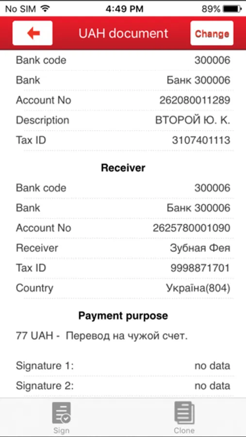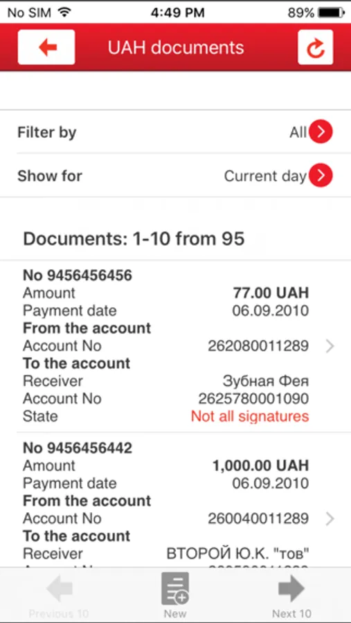 - enter signed UAH payments