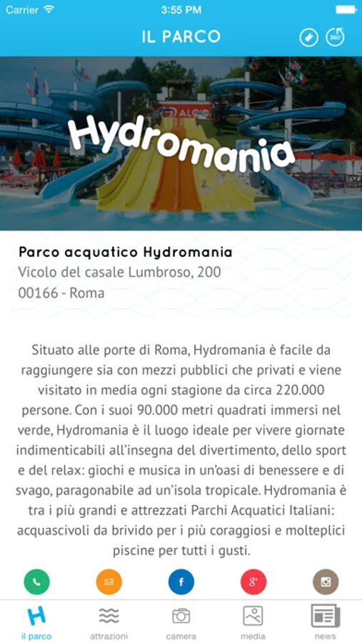 Su Hydromania App, conosci tutte le attrazioni del parco acquatico di Roma. Potrai inoltre conoscere nuovi amici, scattare selfie e condividerle nella tua pagina social.