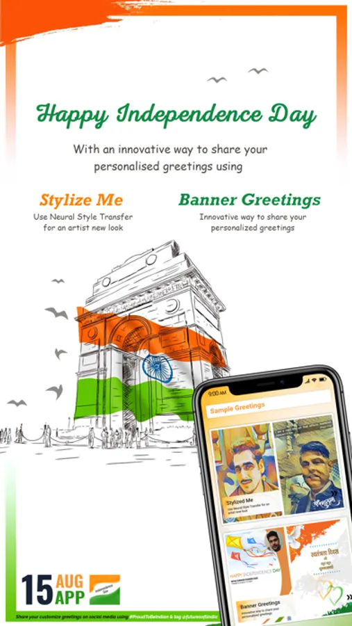 “Stylized Me” - the artist application of Neural Style Transfer (NST) to craft unique greetings. It allows you to experiment with your Selfie by transferring any of the 25 Styles to them. Neural Style Transfer is the blend of artistic creativity with Artificial Intelligence & Machine Learning. Intuitive, simple to use wizard guides you through the creation of personalized Independence Day greetings. Play around & try your photographs with rich and busy backgrounds for some mind-boggling greetings.