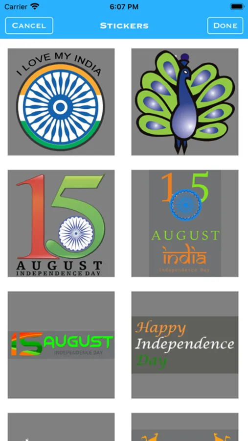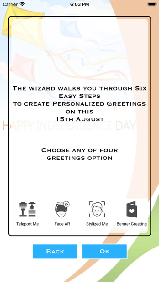 “Banner Greeting” the popular option uses Iconic banners that symbolize independence day – Kites, Tiger, Peacock, Ashok Chakra. Using wizard, you personalize the banners with your Selfie to make it memorable. Decorate your greetings with the range of new stickers and add inspirational quotes from freedom fighters or your own customized message.