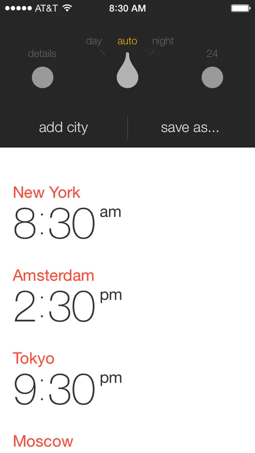 Miranda helps you visually find the best time to schedule international meetings and calls across different time zones. Stop wondering what time it will be in your city for that call with the business partners abroad.