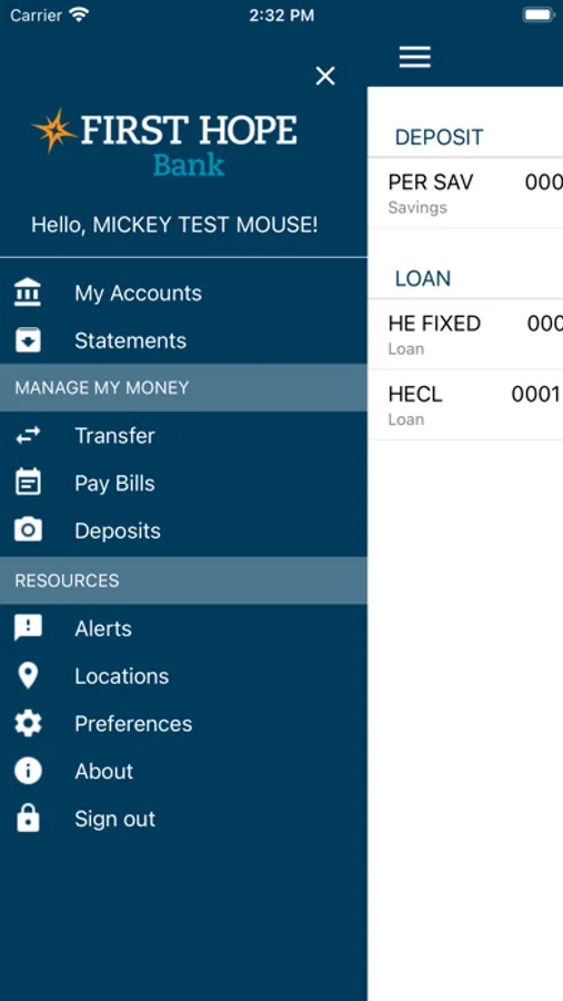 For your security, you must enable Mobile Banking Services from within Online Banking before you may use any of First Hope Mobile’s features.