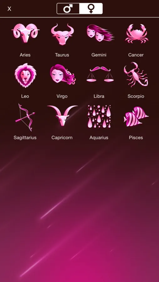 All astrological signs: Aries, Taurus, Gemini, Cancer, Leo, Virgo, Libra, Scorpio, Sagittarius, Capricorn, Aquarius, Pisces