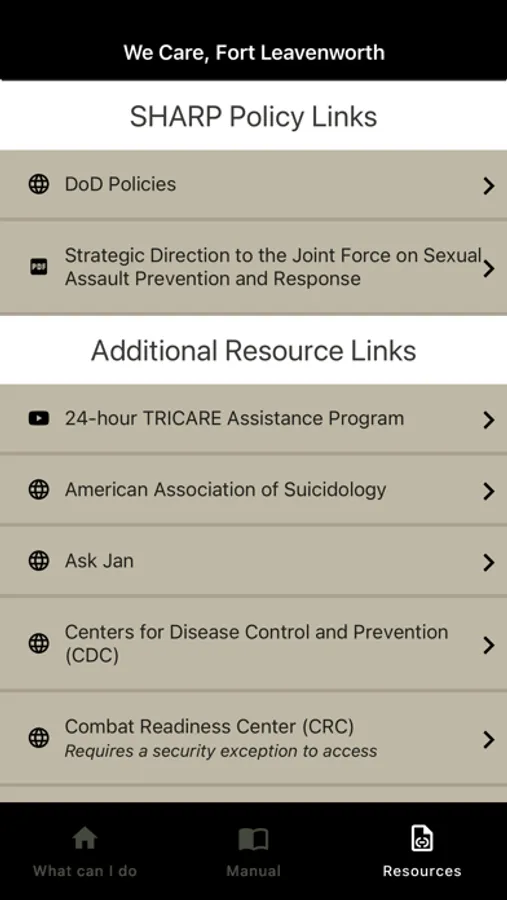 This app is to support the TRADOC Sexual Harassment/Assault Response and