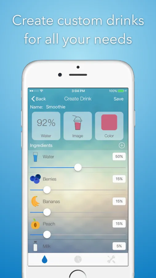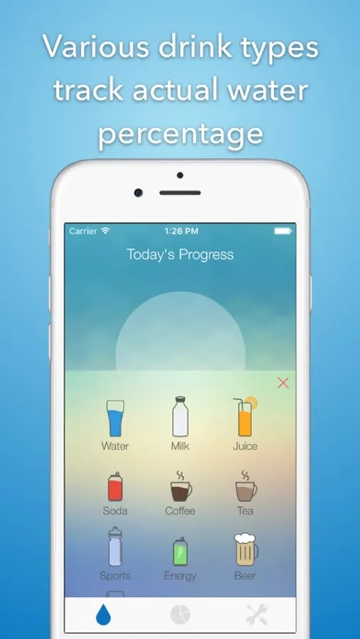 Carefully track how much water you consume during your day to day actives from drinks such as Juice, Tea, Coffee, Energy Drinks, Sports Drinks, Beer, Wine, and Liquor.