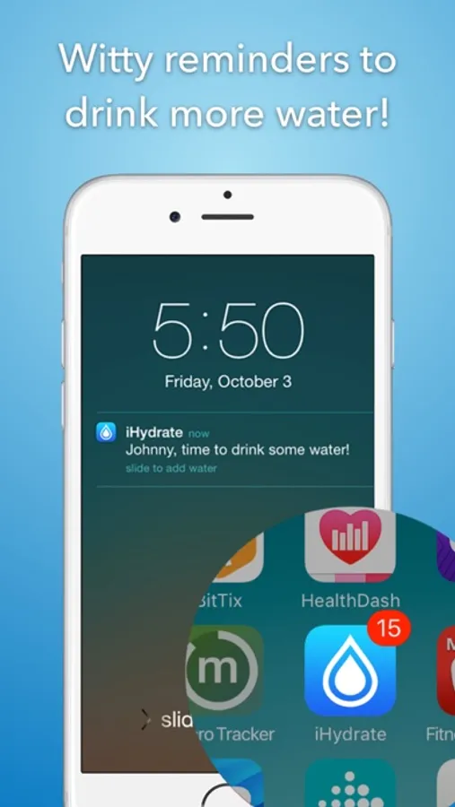 You're not drinking enough water. We can help with charts and reminders (included) to keep you going. Every second of every day, someone around the world is using iHydrate to track & improve their daily water intake. With over 300,000 users around the world and a 4.7 star rating everyone is enjoying iHydrate.