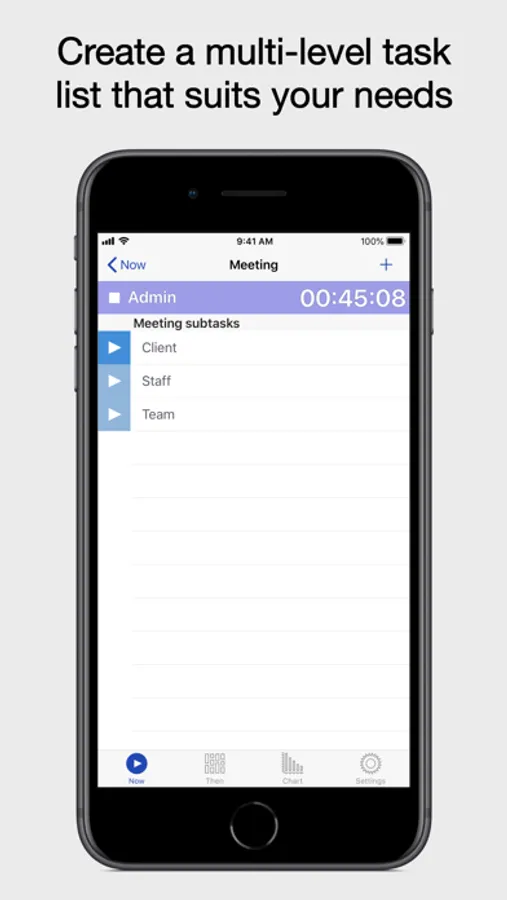 - Simply tap to start and stop tasks, or tap on another to switch to it immediately.