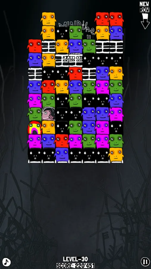 Match two ore more same coloured tiny monsters to make them disappear. Clear seven ore more to get extra points. To reach the next level move the keys to the bottom of the game board, while keeping the bloxes from reaching the top. Some special powerup characters will help you, other will challenge you.