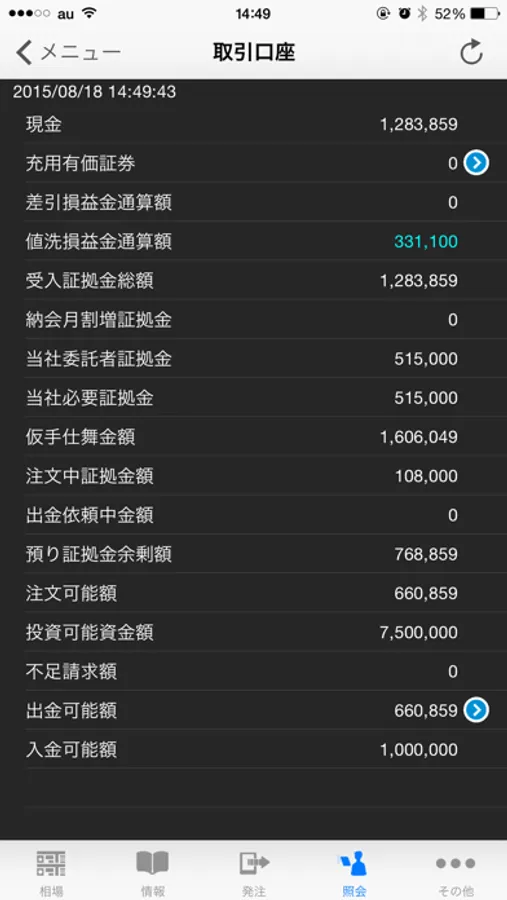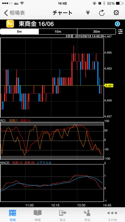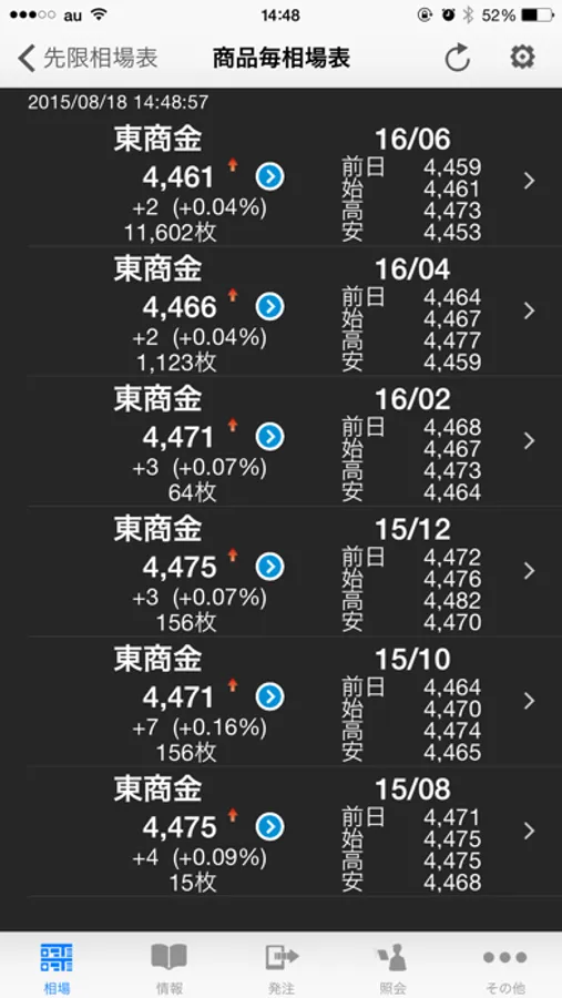 全限月の相場表や板気配値をリアルタイム確認できるのでPCが無い環境でも相場情報を入手することができます。