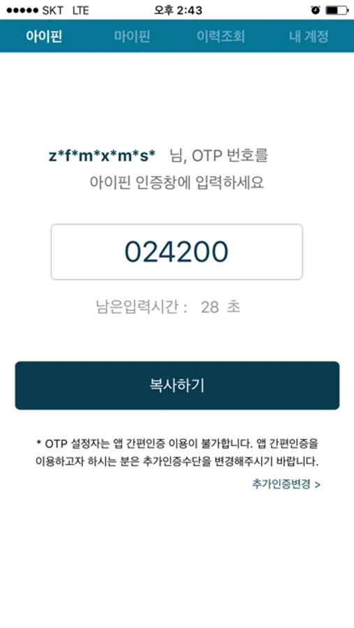 OTP를 추가인증수단으로 제공함으로써 보다 안전하게 아이핀 이용이 가능합니다.