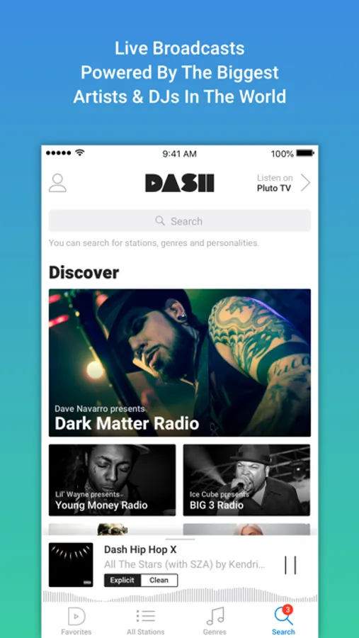 Dash is the biggest original digital radio broadcasting platform in the world. Streaming live 24/7, Dash Radio features the biggest DJ's, personalities, and curators in the world on 75+ original & exclusive stations in every genre (with more added weekly).