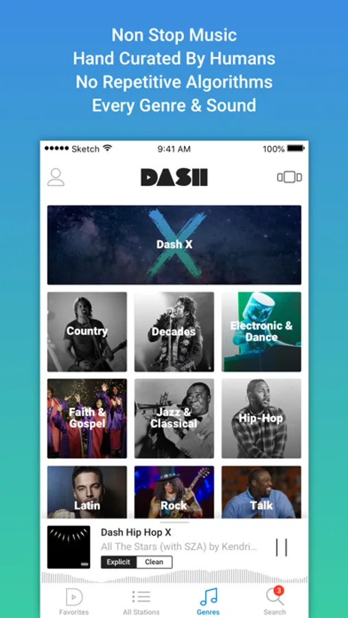 Sick of radio playing the same songs and playlists over and over? Or listening to 15 minutes of commercials per hour? Dash is all original for free with the most variety, zero commercials, and authentic and credible DJ's, personalities and stations.