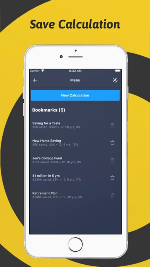Our application allows you to calculate and plan out both long term and short term savings. Just imagine how wealthy you can be if you start right now.