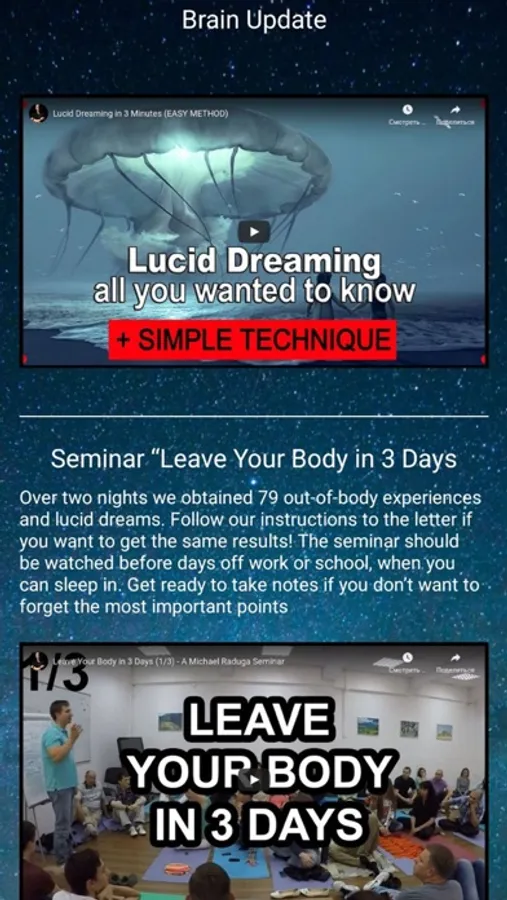 A wide range of techniques, books, videos, and programs to launch your lucid dreaming practice or OBE just right tonight! This free app is based on Michael Raduga's works and Phase Research Center studies.