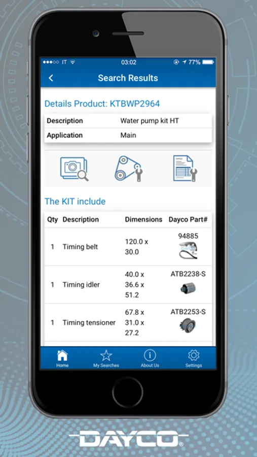 The Catalog App contain technical information and details about Dayco spare parts available on all our market areas.