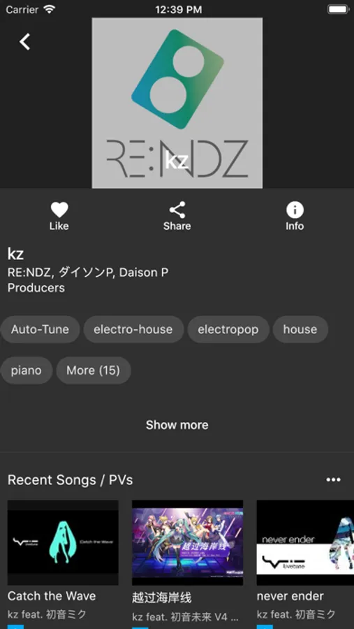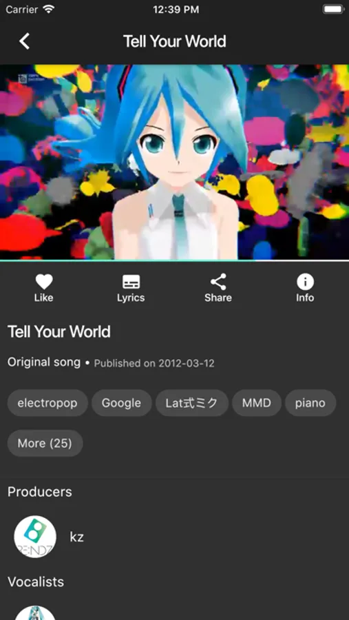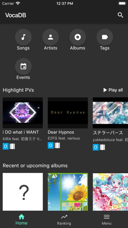 - Discover your favourite artist (Vocaloid, Producer and more) and his/her recent songs or albums.