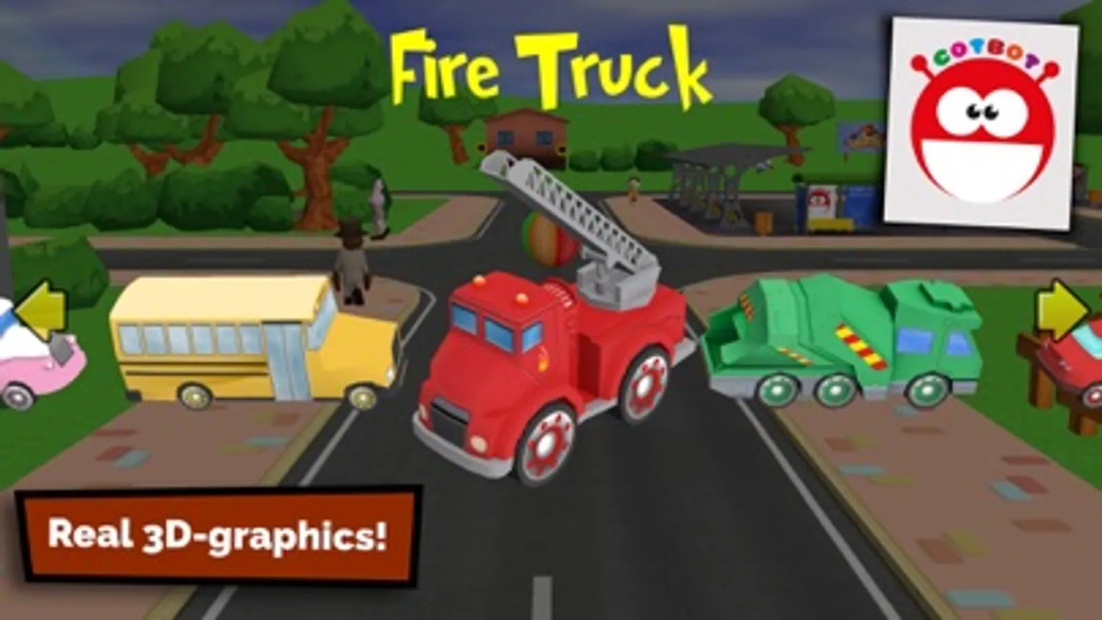 In CotBot City you can explore the city on a virtual car play mat. You can select buildings for the city yourself, and then you get to pick a vehicle of your choice - fire truck, ice cream truck, garbage truck, school bus or an ordinary car. There are several mini games and fun events to explore as you drive along, all depending on which vehicle you are driving. Sell ice-cream with the ice-cream van, drive to the city dump with the garbage truck and put the garbage in the right can, or extinguish fires with the fire truck!
