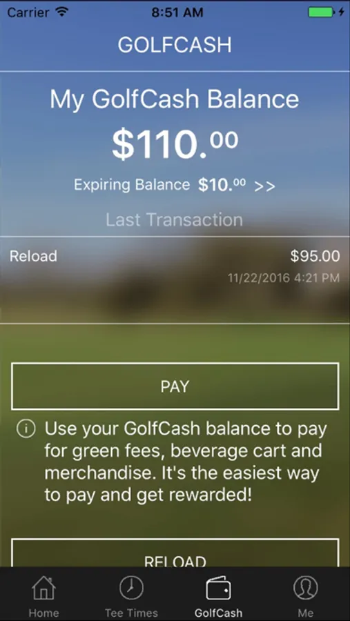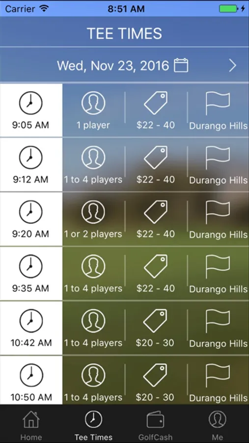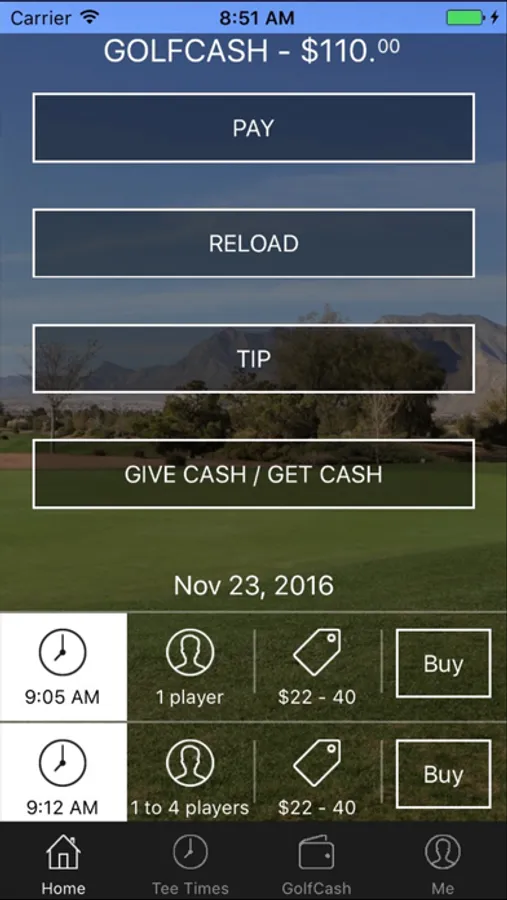 Booking a tee time is as easy as 3-taps and once you've setup your account the app will remember you so its always 3-taps. You can always look up your reservations and cancel reservations if you need to as well. Plus view and redeem your rewards or promotion codes anytime.