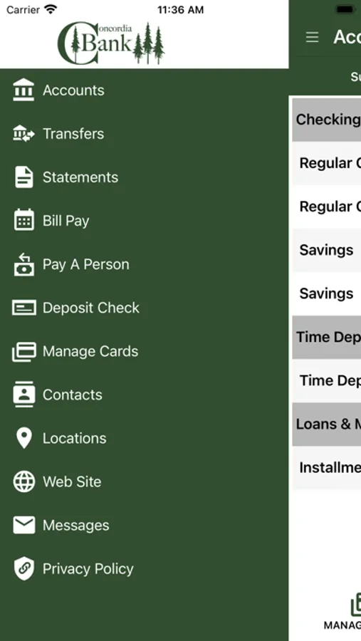 With the Concordia Bank Mobile App you will have the ability to check balances, schedule transfers, view statements, schedule bill payments and deposit checks 24 hours a day / seven days a week.